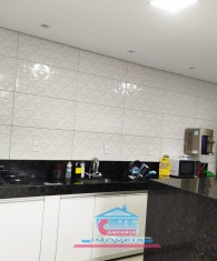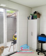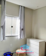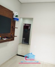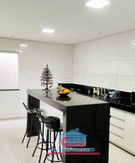 Casa com 01 sala com porta de vidro de correr, 03 quartos, 01 banheiro, cozinha ampla com armários sob a pia e bancada em granito, área de serviço e garagem para 02 carros.