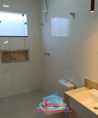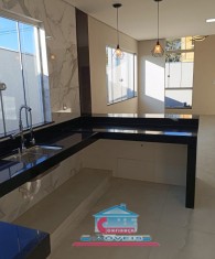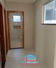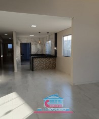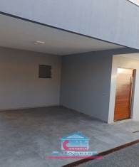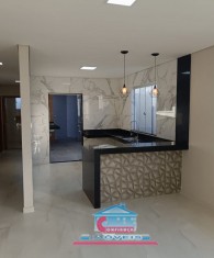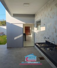 Casa com 03 quartos sendo 01 suíte, sala com pé direito duplo, banheiro social, cozinha, copa, área de serviço com churrasqueira e 02 vagas na garagem.