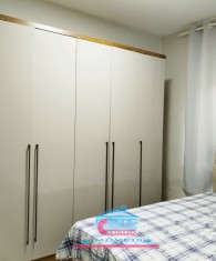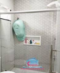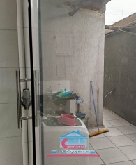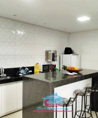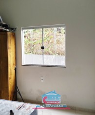 Casa com 01 sala com porta de vidro de correr, 03 quartos, 01 banheiro, cozinha ampla com armários sob a pia e bancada em granito, área de serviço e garagem para 02 carros.