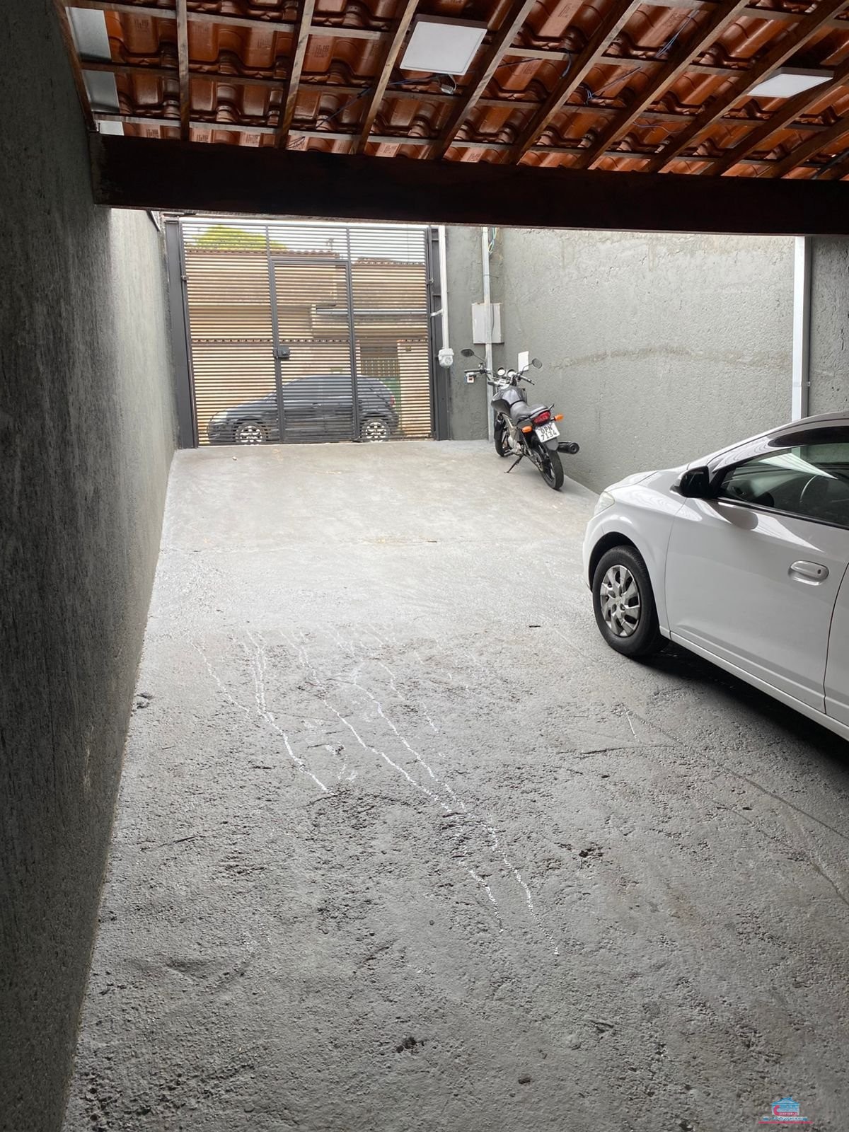 02 quartos sendo 01 su?te com closet, banheiro social, cozinha ampla com arm?rios planejados, ?rea de servi?o e garagem para 04 carros.